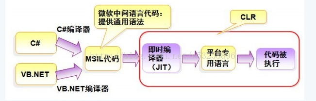 (2)統一數據類型和統一語言語法,原因是.net框架上有不止C#一種語言,其中還包括F#,V,VC++等,這些語言編寫的程序其實最后都會在公共語言運行庫這邊翻譯成統一的語言(中間語言IL),然后再與操作系統進行相關的交互。